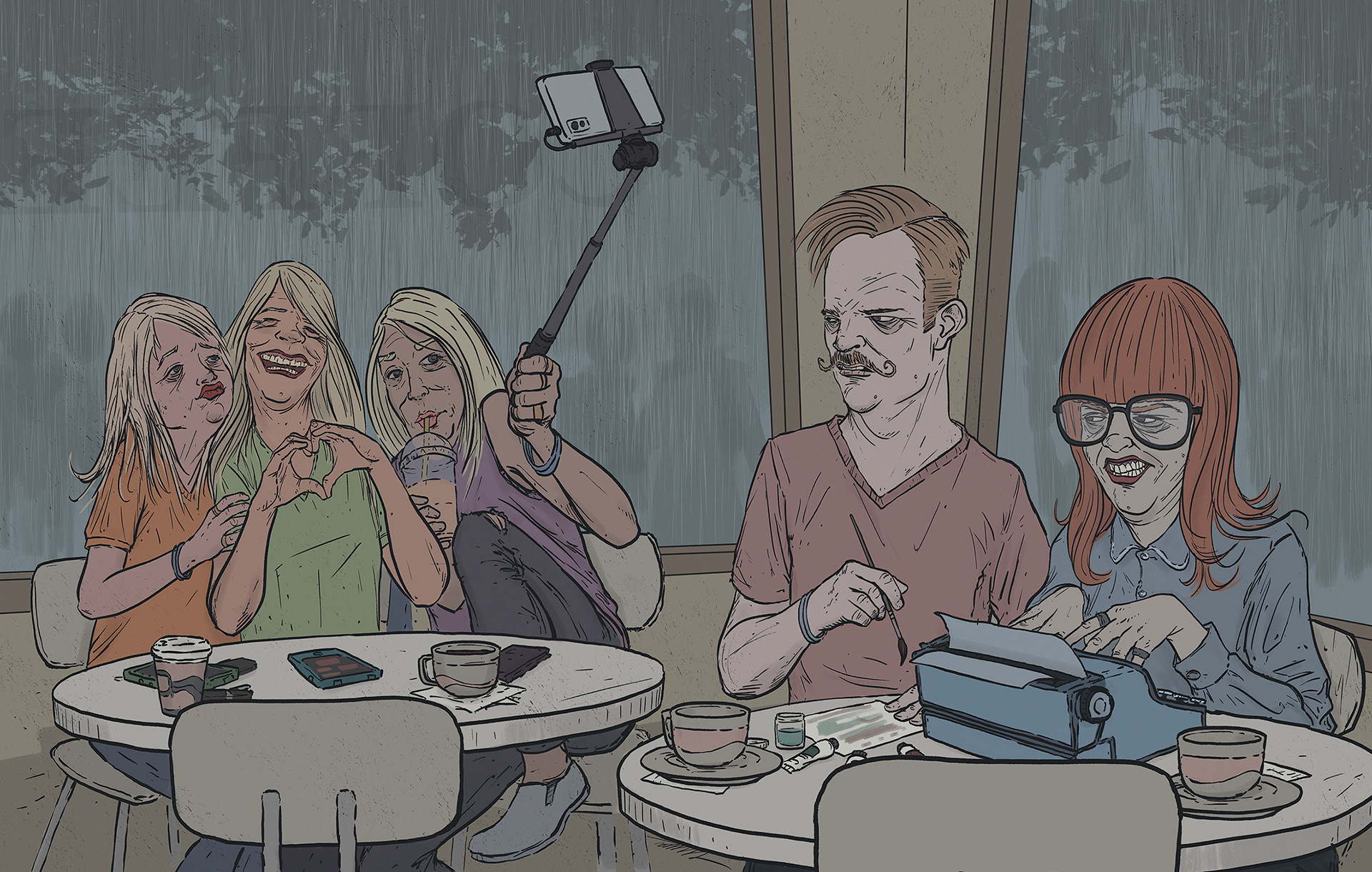 This self promotional piece shows two very different approaches to technology.