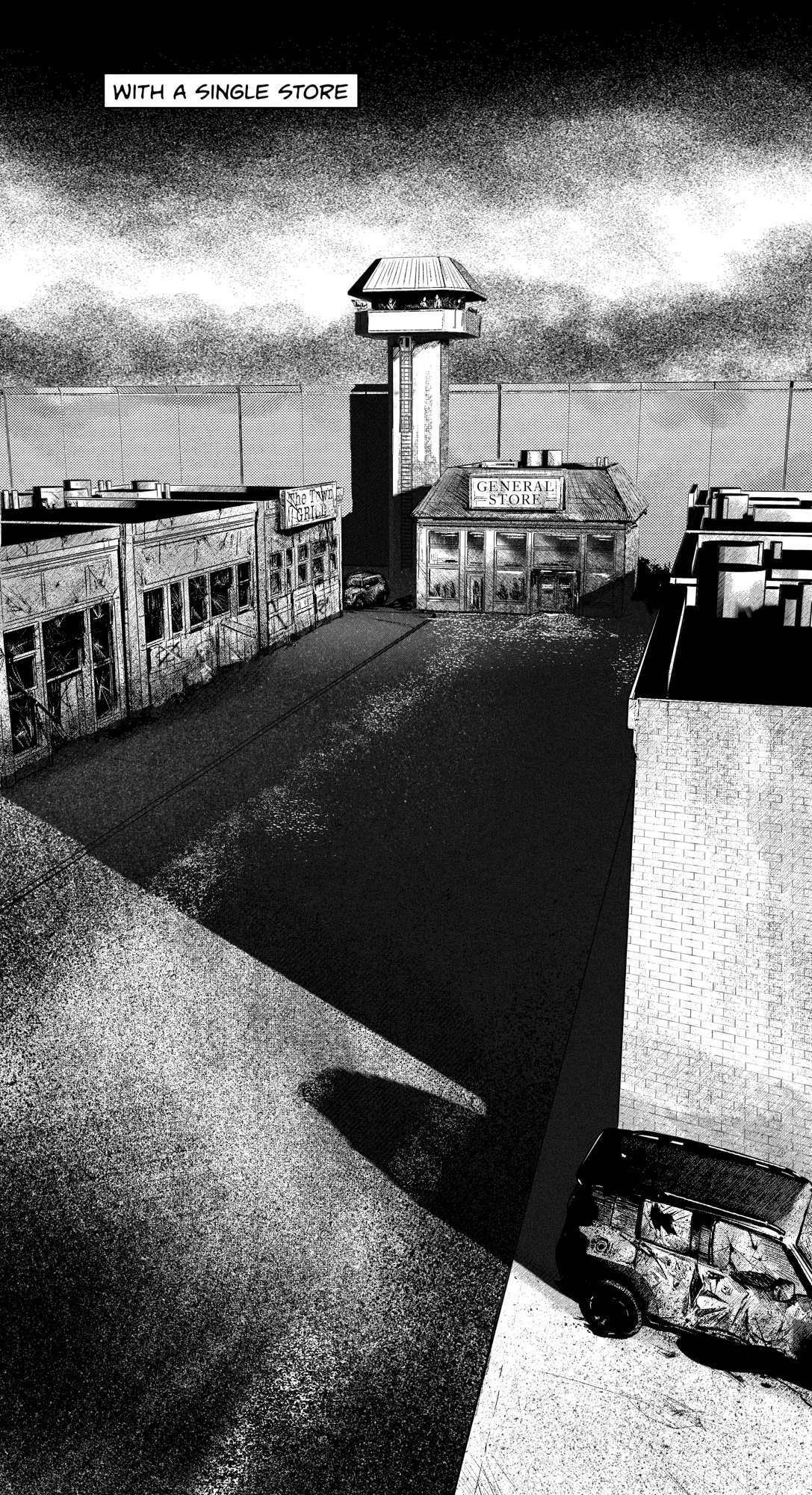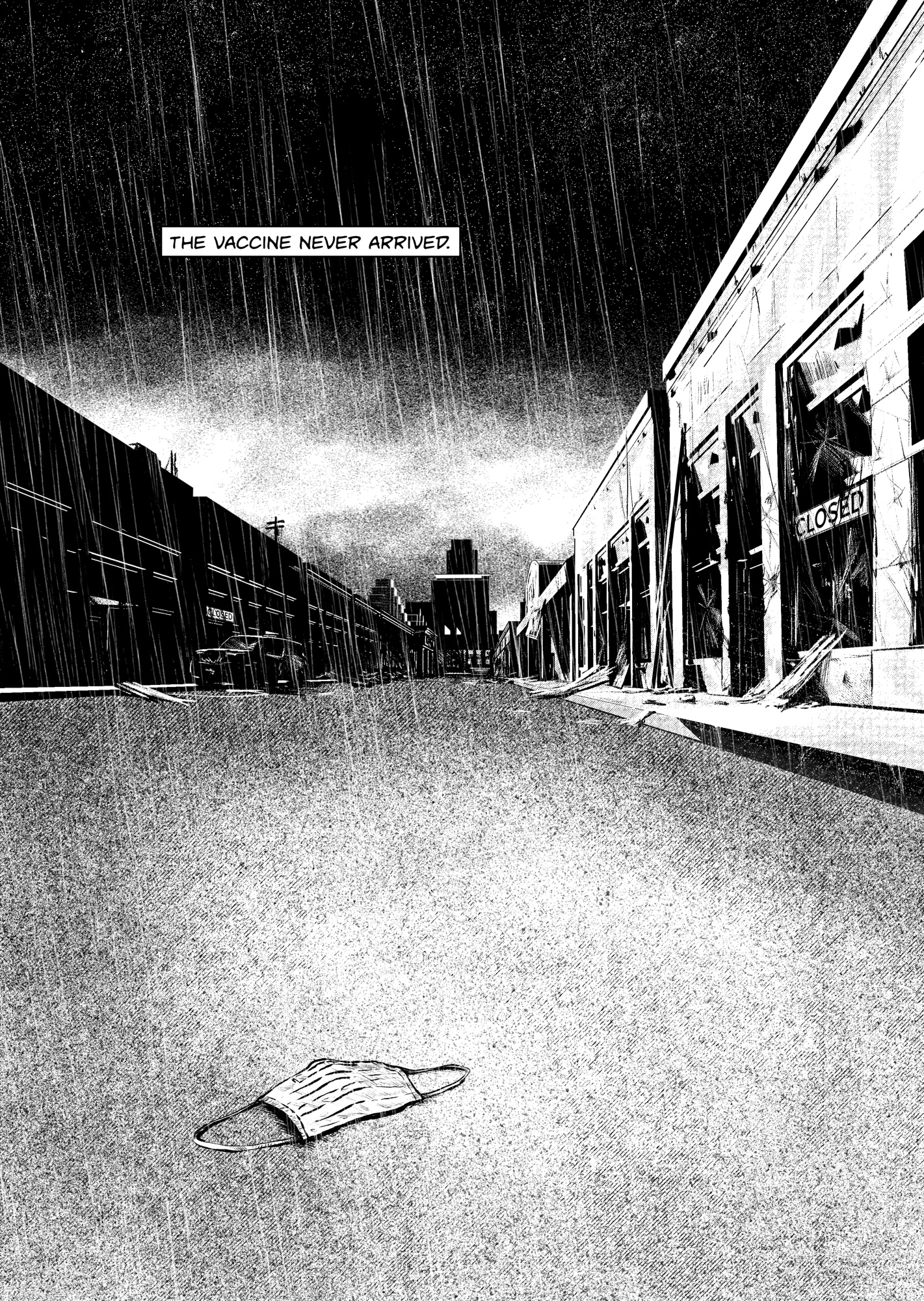 This series was created as a noir comic-style intro for the mobile game TP Panic! Based on provided storyboards, I created set backgrounds in Blender and completed the illustrations in Photoshop.